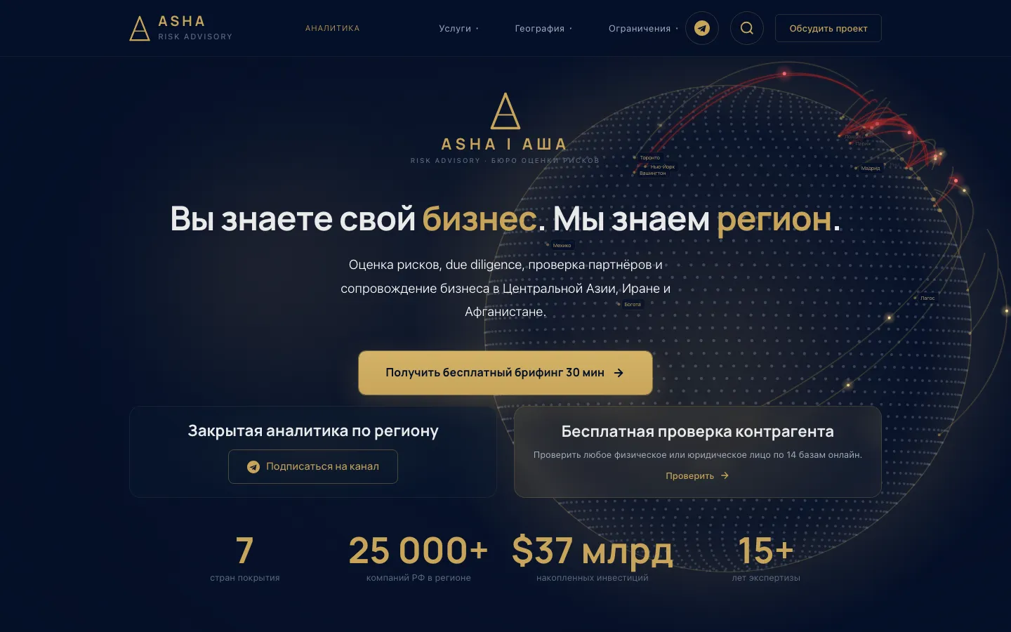 ASHA Risk Advisory — независимый риск-консалтинг, специализирующийся на Центральной Азии, Иране и Кавказе. После ухода крупных игроков (Kroll, Control Risks) на рынке образовалась ниша, которую ASHA решила закрыть.