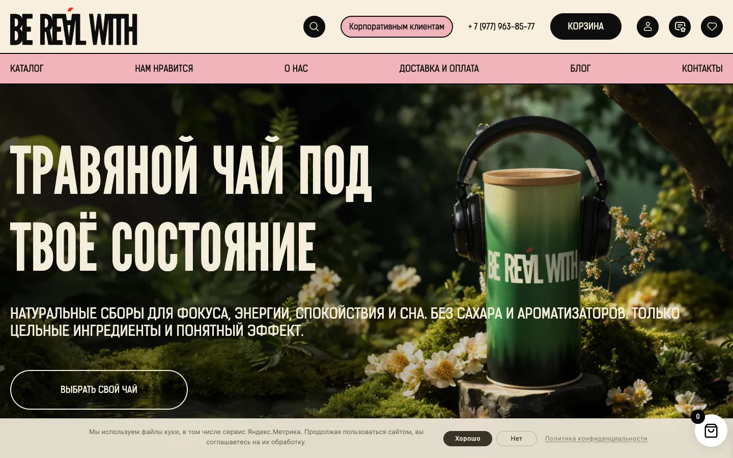 Be Real With — авторский бренд премиум-чая. Магазин работал на готовом шаблоне Tilda, трафик шёл только из Instagram, органика была нулевая.
